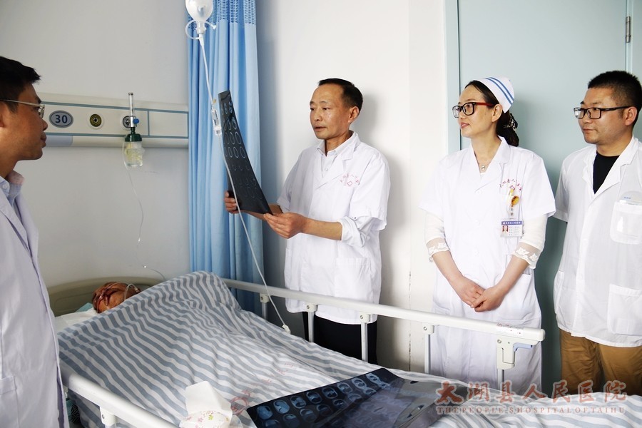 有人说,在医疗技术发展上抢占制高点,离不开一个强有力的人才带动战略,离不开团队成员间密切合作,离不开团队同频共振所产生的无穷能量。刘棣自信地坦言,县医院神经外科是一个充满凝聚力、团结进取精神的团队。他先后将科内5名医生派往安医附院进修,其中一人还前往省立医院进修过。他在工作上率先垂范,严格要求大家执行各项诊疗常规及规章制度,特别是突出抓好病历质量管理,定期督查在院病历和归档病历,确保医疗质量。在他的带领下,该科曾连续五年被评为“先进科室”,特别是从未出过医疗安全事故。在这个科室,我们总能感到团结的力量和团队的气场,每个医护人员的状态都呈现着满满的正能量。
