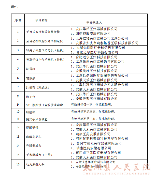 一、采购项目名称:太湖县人民医院医疗设备和耗材