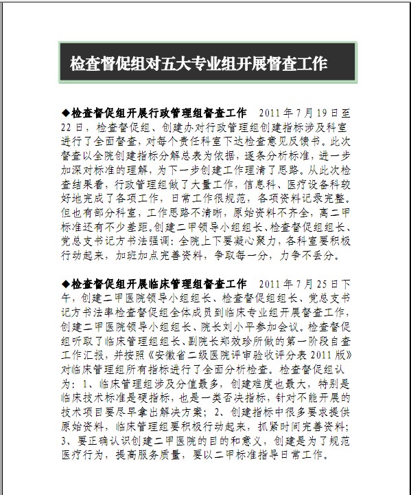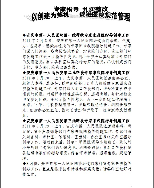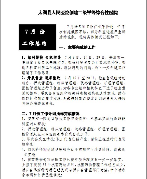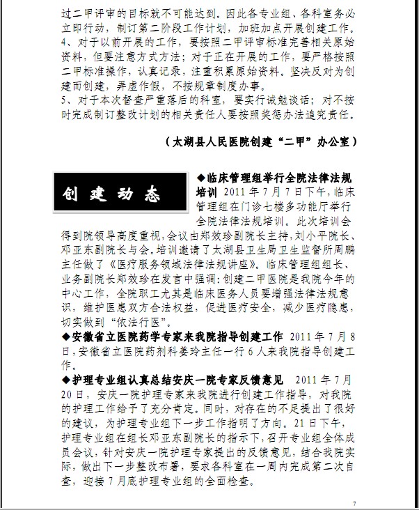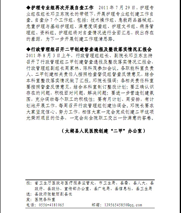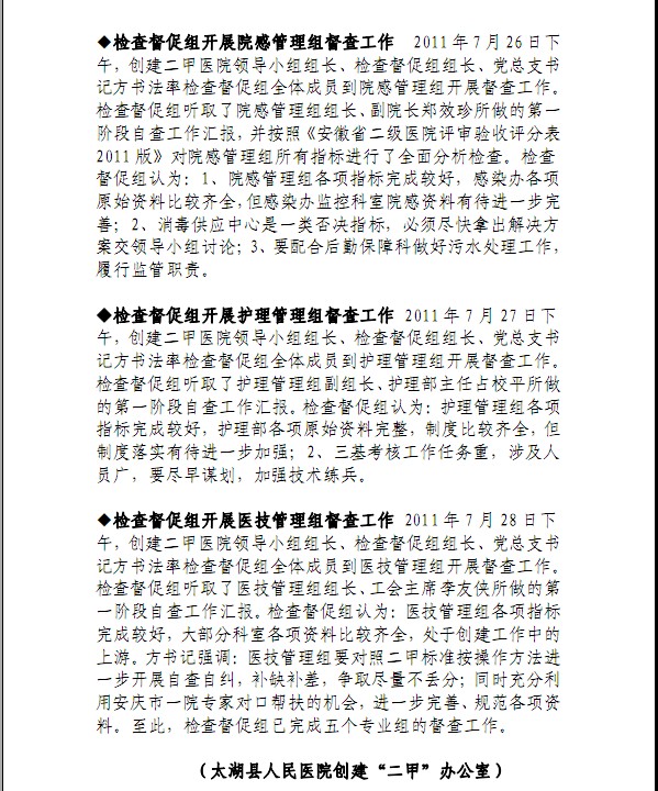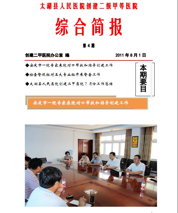 太湖县人民医院创建二级甲等医院综合简报第4期