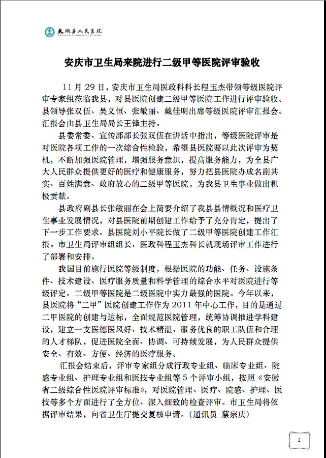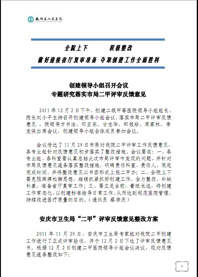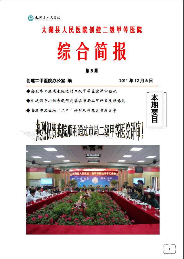 太湖县人民医院创建二级甲等医院综合简报第8期