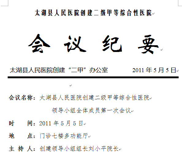 [size=4]参加人员:太湖县人民医院创建“二甲”领导小组全体成员[/size]