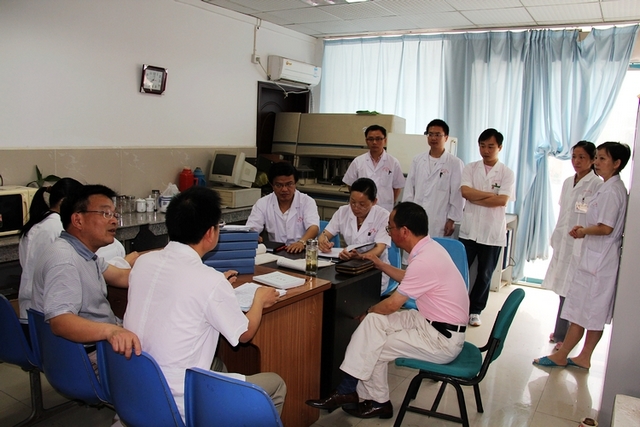 2011 年5月10日上午,院创建二甲领导小组副组长、分管副院长邓亚东,医技管理组组长、工会主席、医教科科长李友侠带领创建二甲领导小组部分成员深入检验科调研二甲创建工作。检验科吴卫云主任首先向领导小组介绍了科室概况,并详细汇报了对照评审标准梳理出达标和未达标项目,对下一步工作计划也做了说明。二甲办工作人员查看了检验科工作日志和各种登记本。医技管理组组长李友侠肯定了检验科在创建工作上的积极态度,检验科是第一个赴宿松县医院学习的科室。邓院长指出:检验科不论从管理上和工作态度上都值得肯定,日常工作很规范,值得全院推广。希望检验科结合评审标准,不断加强管理,提升服务能力,更好地为全县人民服务。[/size]