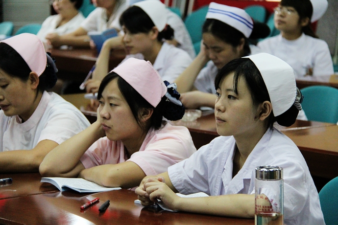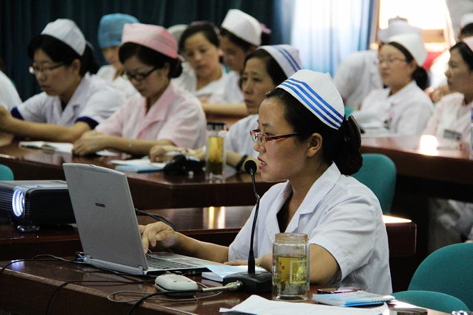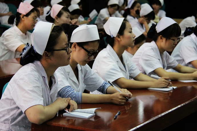 [size=4] 2011年6月27、28日下午,护理部分两个下午对全院护理人员进行护理制度培训。培训会议由护理部主任占校平主持,具体授课由护理部副主任陈芳梅承担。陈主任对医院护理工作31项制度进行了详细的讲解与分析,特别是查对制度、交接班制度、分级护理制度、护理文书书写制度、临床护理工作制度、执行医嘱制度、护理安全管理制度、护理质量管理制度、患者出入院、转入转出管理制度等制度,需要护理人员牢牢掌握。本次培训实到人数150人,会场秩序良好,大家学习十分认真。(护理部 供稿) [/size]