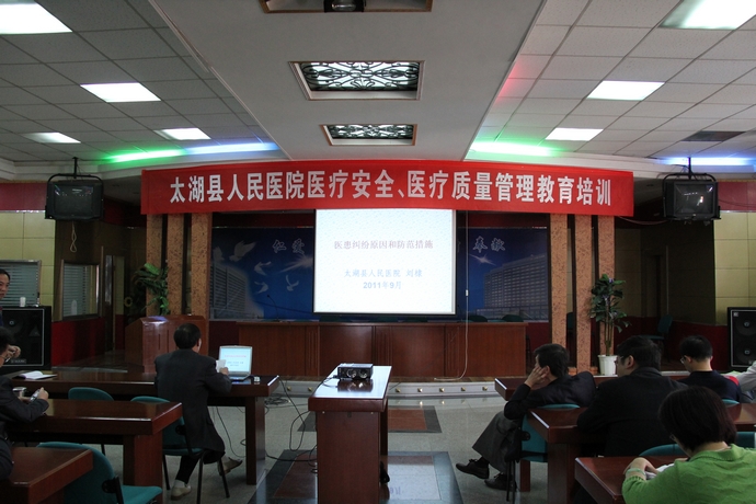 2011年9月23日下午,医疗质量管理委员会副主任委员、分管副院长郑效珍主持召开了全院医务人员医疗安全、医疗质量管理教育培训会。脑外科主任刘棣结合我院实际, 做了“医患纠纷原因和防范措施”的讲座,就临床实践中如何预防医疗纠纷,对有潜在医疗纠纷的案例如何及时处理,做了深入浅出的讲解,使全院医护人员受益匪浅。医疗质量管理科科长徐汪松做了“医疗质量管理与持续改进”,徐科长对现代医疗质量管理新概念及改进措施进行了详细的讲解,强调医疗质量对于医院求生存求发展的重要性。最后郑院长做总结发言,强调医疗质量管理与持续改进及医疗安全在临床工作中的重要性,要求全院医护人员高度重视,保证医疗安全、持续提高医疗质量。 会后,还对我院医技人员进行了“医学三基知识”及“医疗卫生法律法规”的考核。(通讯员 王丹)