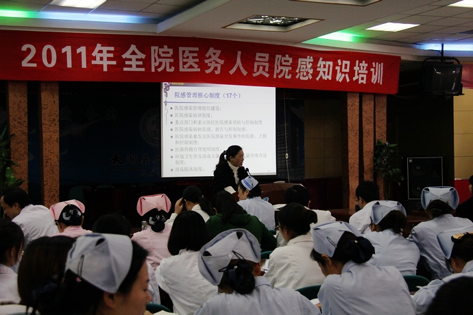 2011年11月18下午,感染专业组在七楼多功能厅举行全院医务人员院感知识培训,培训由临床专业组组长、感染专业组组长、分管院长郑效珍主持。