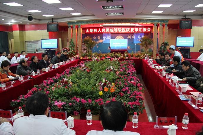 12月14日上午,等级医院复审汇报会在门诊七楼多功能厅举行,县领导程志翔、张双伍、施爱枝、倪泽胜,局领导王锋、李盛华出席汇报会,汇报会由安庆市卫生局局长杨金奎主持,县政府副县长张敏丽致欢迎辞。 省卫生厅医政与医管处处长费勤福在讲话中对我院创建二甲工作给予了充分肯定,要求我院在国家大力推进医疗改革的新形势下抢抓机遇,以等级医院创建为契机,规范医院管理,不断改进医疗质量。