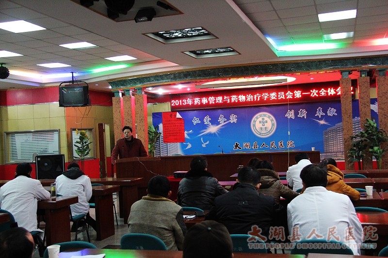 2013年1月4日下午, 我院在门诊七楼会议室召开今年药事管理与药物治疗学委员会第一次全体会议,药事管理与药物治疗委员会主任委员、院长方书法到会并讲话,会议由副主任委员甘志华副院长主持。