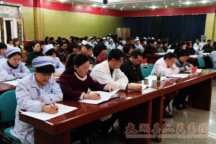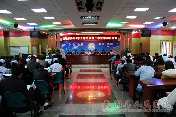3月12日下午,我院2013年工作会议暨二甲复审动员会在门诊七楼会议室召开,院长方书法、院党总支书记邓亚东分别作医院工作报告和党务工作报告,二甲复审办公室主任、副院长郑效珍传达二甲复审实施方案,县卫生局局长王锋出席会议并讲话。会议由副院长甘志华主持,院班子成员、二级机构负责人、各科主任护士长、全体职工代表共100余人参加会议。