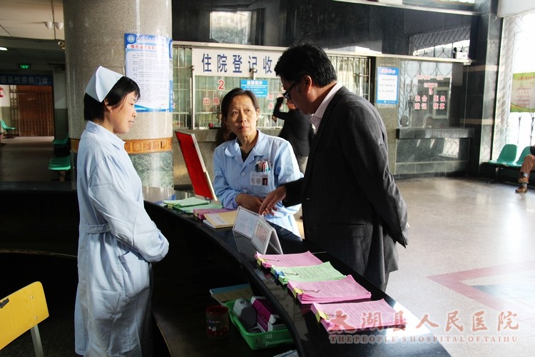 在门诊咨询台,方院长了解了咨询台便民服务措施、投诉电话公示、各诊室出诊等情况。方院长要求,各科室要高度重视文明县城创建工作,尤其咨询台及门诊各窗口科室是医院的窗口和形象,要进一步增强文明服务意识,对投诉的问题要做到有登记、有处理、有反馈,不断改进工作。方院长一行重点还抽查了各收费发药窗口工作人员挂牌上岗情况,对院容院貌整治提出了进一步要求。