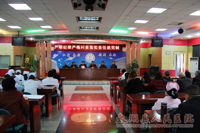会议强调:全院上下要充分认识严肃工作纪律、整顿工作作风的重要性和紧迫性,深入贯彻落实医疗卫生行风建设“九不准”。“九不准”新规是继中央“八项规定”后,医疗卫生系统针对行业实际而出台的反腐倡廉建设新举措,是国家卫计委为加强作风建设给各级卫生人设立的规矩和底线。各科室要结合学习贯彻县纪委《关于2014年元旦春节期间严肃纪律加强廉洁自律工作的通知》、《太湖县人民医院关于开展医药购销和医疗服务中突出问题专项治理工作实施方案》和即将开展的群众路线教育实践活动,大力开展学习宣传,采取有效措施抓好贯彻落实。