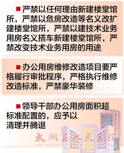 (一)停止新建、扩建楼堂馆所。严禁以任何理由新建楼堂馆所,严禁以危房改造等名义改扩建楼堂馆所,严禁以建技术业务用房名义搭车新建楼堂馆所,严禁改变技术业务用房的用途。