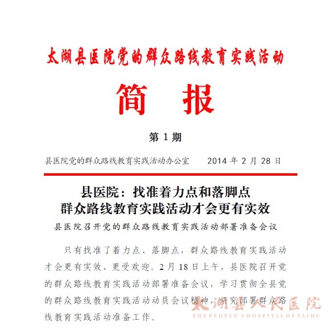 附件:Microsoft Word - 太湖县医院党的群众路线教育实践活动简报第一期.pdf [224.0 KB]