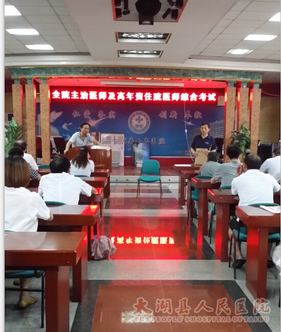 为进一步强化专业知识,增强临床工作能力,提高专业素养,以考促练,以考促学,更好地为广大患者服务, 按照《太湖县人民医院2014年主治医师培训实施方案》的要求,2014年7月11日下午4:00我院主治医师、高年资住院医师考试如期举行。本次应参加考试医师80人,其中因值班、手术、进修等请假16人,来自临床、医技科室的64名主治医师及高年资住院医师参加了考试。考试内容涵盖三基知识、专业技能、医学法律法规、医疗核心制度等。考试合格率达93.8%。
