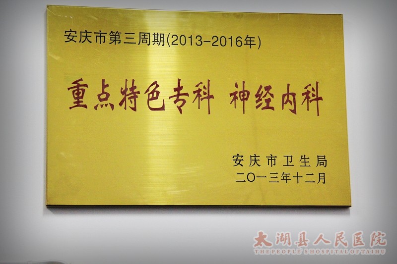 神经内科为安徽省“十二五”临床重点建设特色专科,是我院唯一一个省市临床重点建设特色专科。科主任张正江同志为县政协常委、神经内科主任医师,擅长脑血管疾病、癲痫、脊髓疾病、神经炎及神经症等神经内科疾病的诊治。