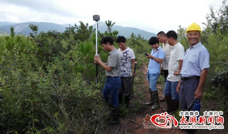 8月11至12日,县医院整体搬迁项目勘界工作正式启动,地面附着物清理和勘探工作随后即将全面展开。图为国土局土地勘测所工作人员在现场按坐标定位。(县卫生局)