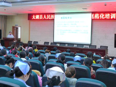 培训中,人力资源科朱杏娥科长介绍了医院的基本情况,规章制度,感染办王飞主任就院感知识与大家进行了交流,护理部陈芳梅副主任就团队精神、服务与沟通技巧、护理文书书写、护理应急预案、护理工作制度、护理人员的核心能力等方面进行了深入浅出的讲解。急诊科张爱琴护士长对影响护理安全的因素进行了分析,外一科李淑霞护士长对围术期护理做了细致的讲解,口腔五官科范琳琳护士长做了《忠诚胜于能力》的精彩讲课,门诊部胡燕护士长讲解了《压疮的预防与护理》,内一科孙宝平护士长讲解了糖尿病护理知识,演示了胰岛素笔的操作,ICU杨菲护士长对心电监护与心肺复苏进行了理论授课与示范操作,神经内科汪昕鑫护士长对《静脉治疗护理技术操作规范》进行了解读,产科李爱红副护士长讲解了母乳喂养知识。