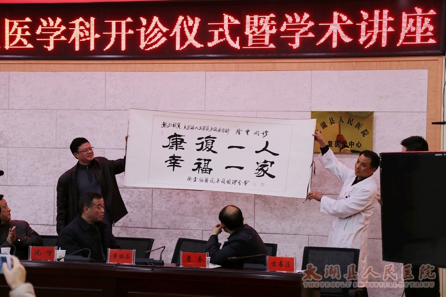 2月26日,县人民医院康复医学科正式开诊,县人大副主任吴朝良、县政协副主席倪泽胜为科室揭牌,会议邀请卫计委全国卫企协医院康复管理分会副会长高宁来院学术讲座,县卫计委、民政局、残联等科局负责人出席开诊仪式,县医院及全县乡镇卫生院代表共200余人参加会议。