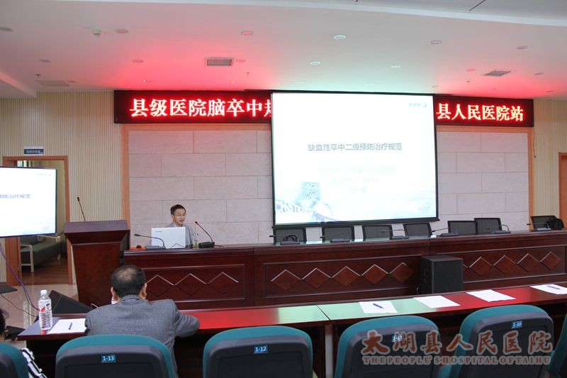4月23日下午,由中国卒中学会主办,县医院承办的“县级医院脑卒中规范诊疗项目”在我院举行。会议邀请到安医附院神经内科副主任王长青做教学查房和学术讲座,邻县兄弟医院、本县乡镇卫生院及本院专业技术人员共150余人参加会议。讲座由我院神经内科主任张正江主持。