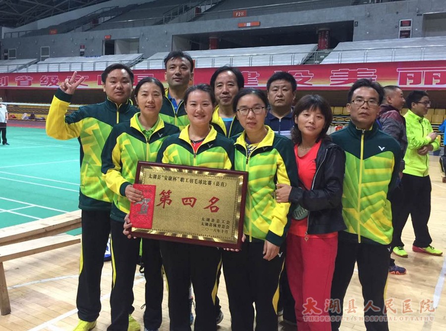 10月22至23日,由县总工会、县体育局主办的太湖县“安康杯”职工羽毛球赛在县体育馆隆重举行。来自全县的32支球队参加了比赛。医院羽毛球队虽是第一次组队,但在比赛中不畏强手,团结一心,顽强拼搏,展现了良好的精神风貌和拼搏精神!特别是杨翠芳同志,刚刚代表了太湖县参加市运会载誉归来(我县唯一获奖女选手),来不及休息调整,就立即加入到球队里,为所有队员树立了良好的榜样。经过两天的激烈角逐,最终医院羽毛球队获得了第四名的优异成绩!(麻醉科 程鹏)