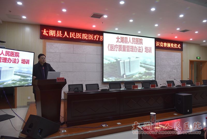 1月6日下午,我院在16楼学术报告厅举办医疗质量管理办法培训,院长方书法主讲医疗质量管理办法(下称《办法》),总支书记邓亚东主持会议,医疗质量管理委员会全体成员,各临床、医技科室200余名医护人员参加培训。