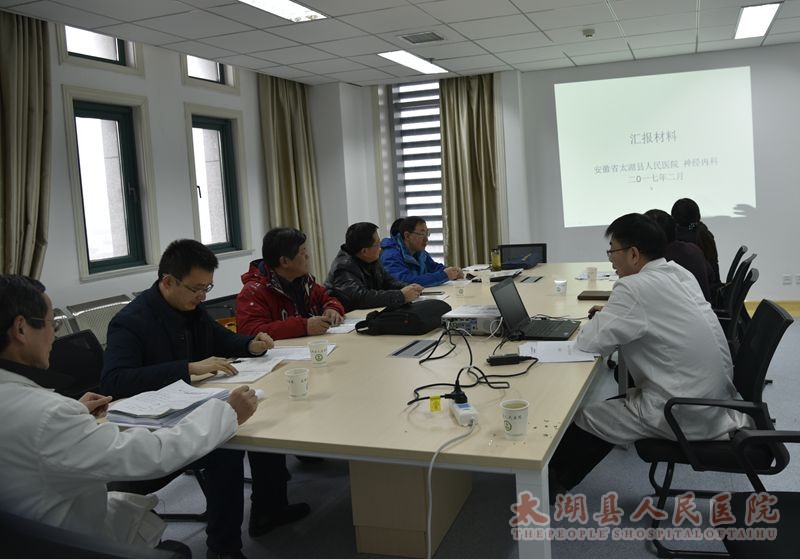 评审会上,神经内科负责人从专业技术队伍、医疗服务指标、学术成就、软硬件设施等方面详细介绍了目前科室专业技术水平状况。随后,专家组通过查阅资料,对照安庆市第三周期(2013-2016年)医学重点学科建设评估指标,进行了逐项检查评分。