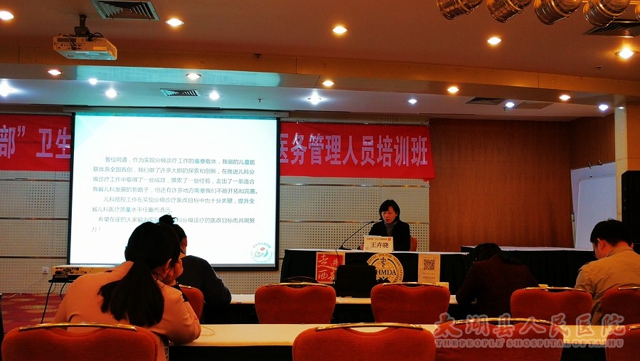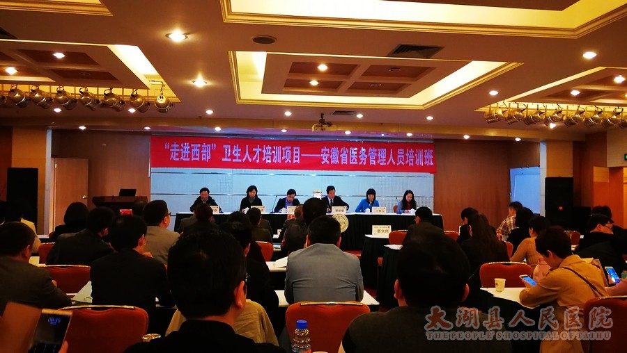 由国家卫生计生委和安徽省卫生计生委主办,安徽省医师协会承办,国家卫生计生委医院管理研究所协办的“走进西部”卫生人才培训项目—安徽省市县医院医务管理人员培训班在合肥举行。开幕式由省医师协会秘书长颜雨春教授主持,省医师协会会长、安医大一附院党委书记梁朝朝教授、国家卫生计生委医政医管局医疗资源处王毅处长、省卫计委医政医管处王卉晓处长、国家卫生计生委医院管理研究所王春玉主任出席开班式并作重要讲话,来自全省16个市, 62个县(市)的170余名医务工作者参会,我院院长助理、医教科科长蔡宗庆参加培训。