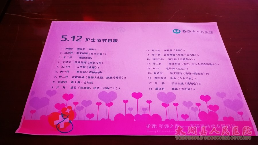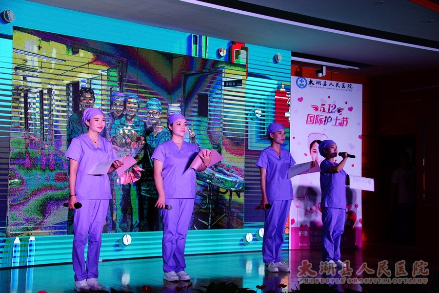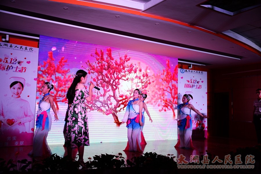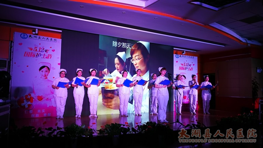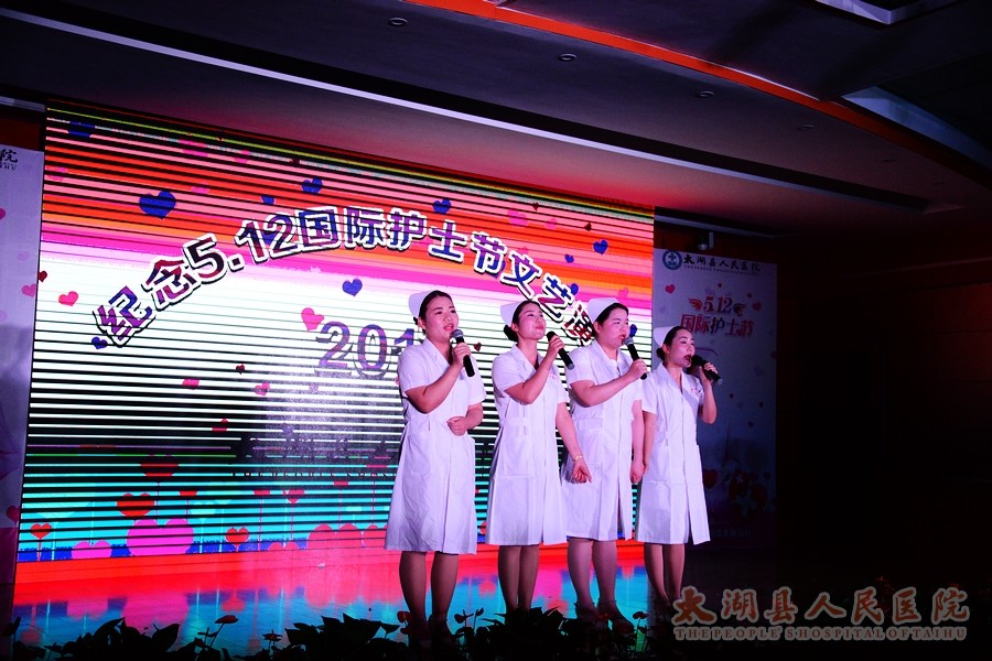 5月11日晚,我院举行纪念“5.12”国际护士节文艺演出活动,致敬辛勤工作在临床一线、为保障人民群众健康默默无闻、无私奉献、勇挑重担的护理工作者们。县卫计委、太湖通讯社主要负责人应邀观看演出。医院全体领导班子成员与全院医护工作者齐聚一堂,欢度第106个国际护士节,致以节日的问候和祝福。(摄影 蔡宗庆)