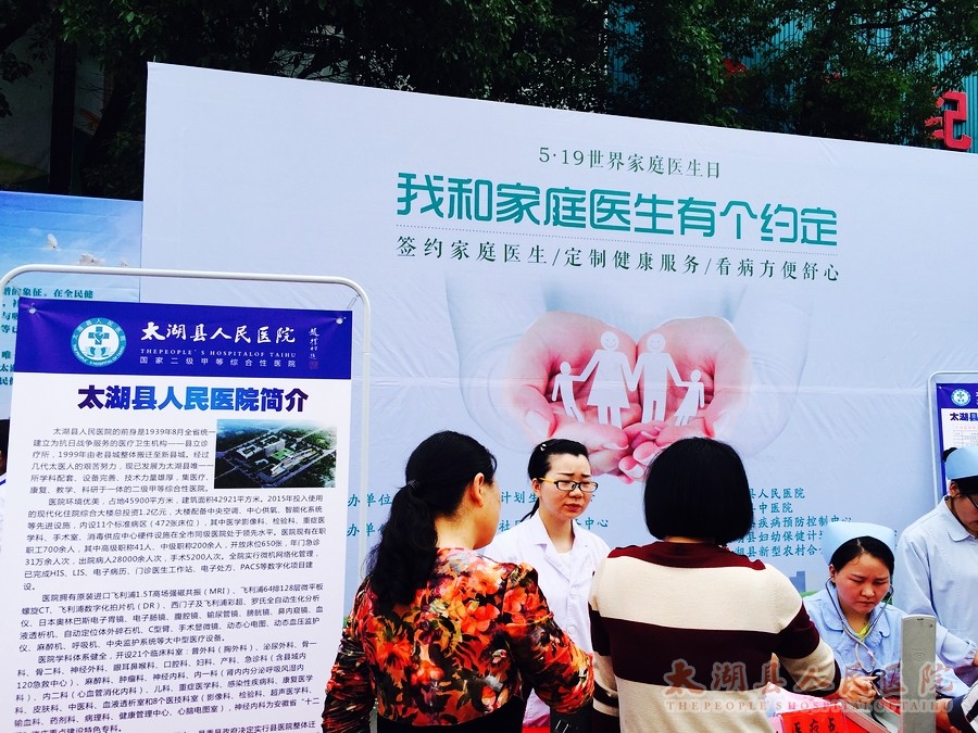 5月19日是第7个“世界家庭医生日”,今年的主题是“家庭医生是居民健康守门人;让每个有需要的家庭都能拥有一名家庭医生”。当天,在县卫计委的统一安排下,我院派出医生2名、护理2名参加了“5.19世界家庭医生日”大型广场宣传活动。