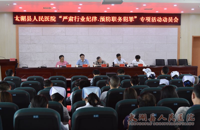 6月8日下午,医院“严肃行业纪律.预防职务犯罪”专项活动动员会召开。县检察院党组成员、政治处主任孟凡平、县卫计委纪检组长陈俊、医院院班子成员出席会议,医院职能科室负责人、全体医务人员除值班人员外参加会议。
