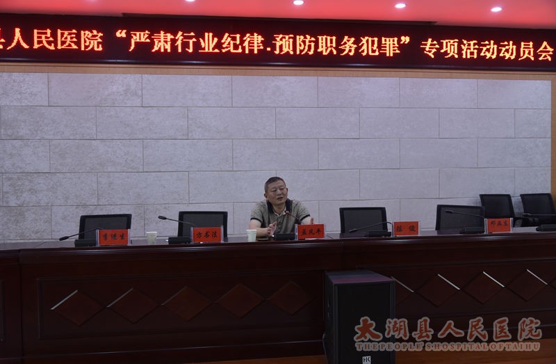 院长方书法主持会议,并宣读了《太湖县人民医院严肃行业纪律.预防职务犯罪专项活动实施方案》。