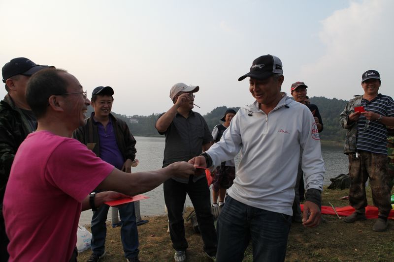 比赛于下午四点结束,收杆称重,评出得奖名次。工会李主席逐一发奖,欢声笑语弥散山间。在夕阳下大家合影留念,乘船返归,本次比赛圆满结束。
